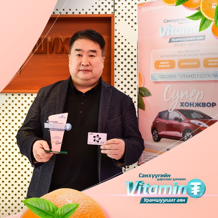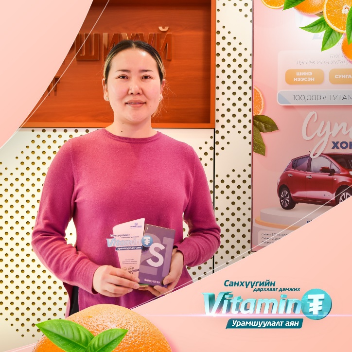 -“Витамин ₮” аяныг өнгөрсөн жил анх хэрэгжиж эхэлсэн цагаас нь мэддэг байсан. Харин энэ удаад би хадгаламждаа орлого нэмэхэд орлогын дүнгийн маань 100,000₮ тутамд 1 ширхэг сугалааны эрх үүссэн байсан. Тэгээд л оролцох эрхтэй болсон байсан.