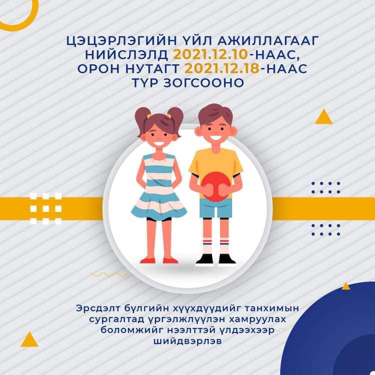 Халдварын эрсдэл харьцангуй бага байгаа учир орон нутгийн сургуулиуд 5/9 зарчмын дагуу хичээллэж, арванхоёрдугаар сарын 18-ны өдрөөс нэгдүгээр улирлын амралтыг эхлүүлнэ.