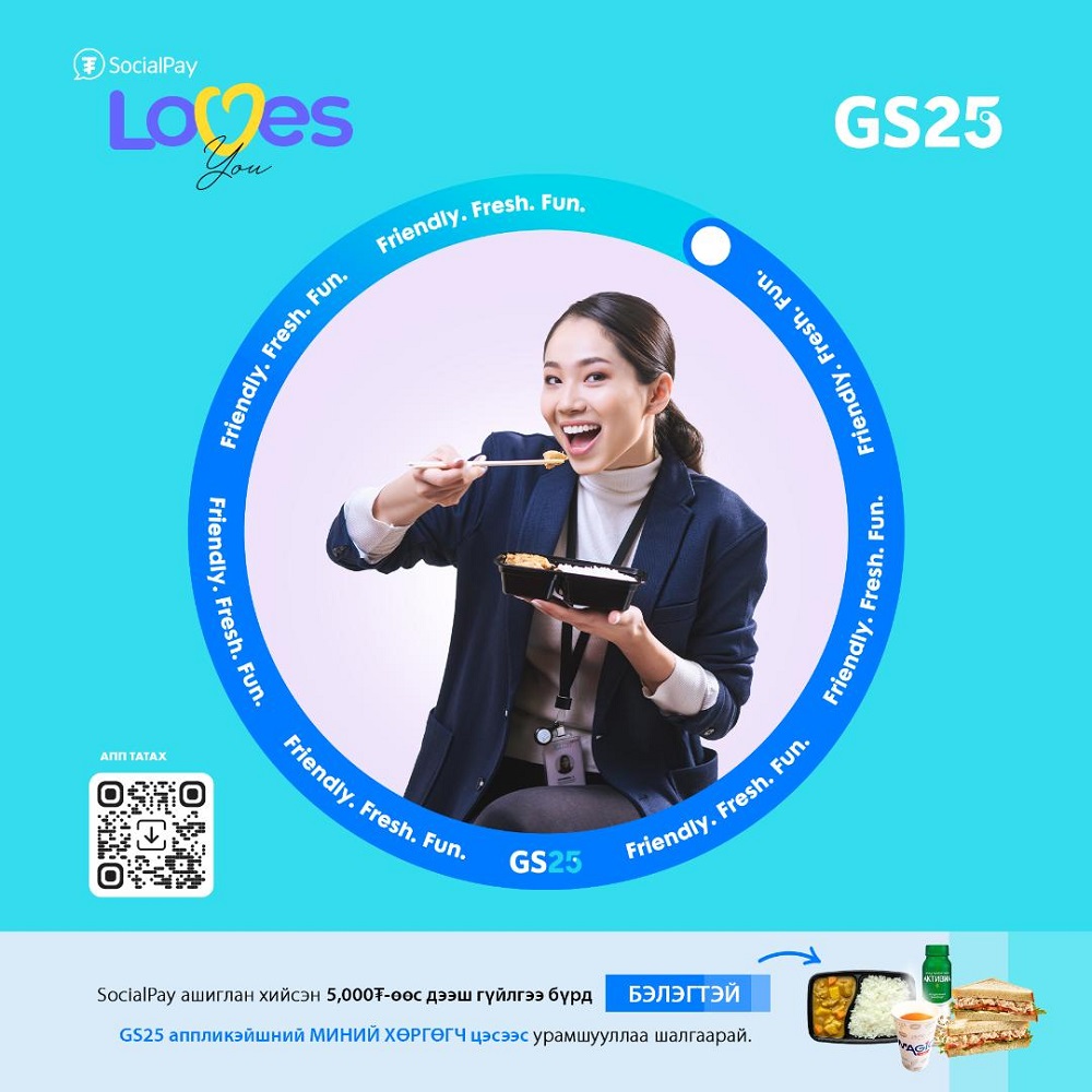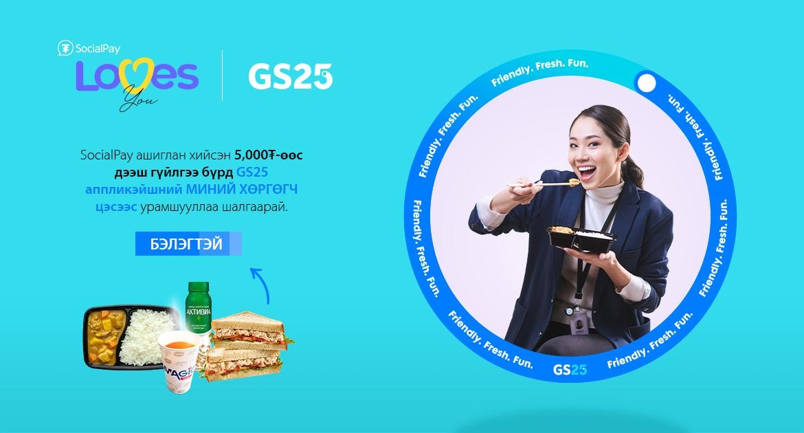 Голомт банкны шилдэг дижитал бүтээгдэхүүн SocialPay аппликэйшн ээлжит урамшуулалт аянаа GS25 сүлжээ дэлгүүртэй хамтран хэрэгжүүлж эхэллээ. Эрхэм хэрэглэгчдэдээ зориулж буй гэнэтийн бэлэг “SocialPay loves GS25” урамшуулалт аян нь 2021.12.16-2021.12.30-ныг дуустал үргэлжлэх юм. Харин энэ хугацаанд та GS25 дэлгүүрээс SocialPay ашиглан 5000-аас дээш төгрөгийн худалдан авалт хийсэн тохиолдолд доорх бүтээгдэхүүнүүдийн аль нэг нь таны GS25 аппликэйшний “Миний хөргөгч” цэсэд орох болно. Танд урамшууллаар олгосон бүтээгдэхүүнийг 7 хоногийн дотор тус сүлжээ дэлгүүрийн аль ч салбараар үйлчлүүлэн авах боломжтой.