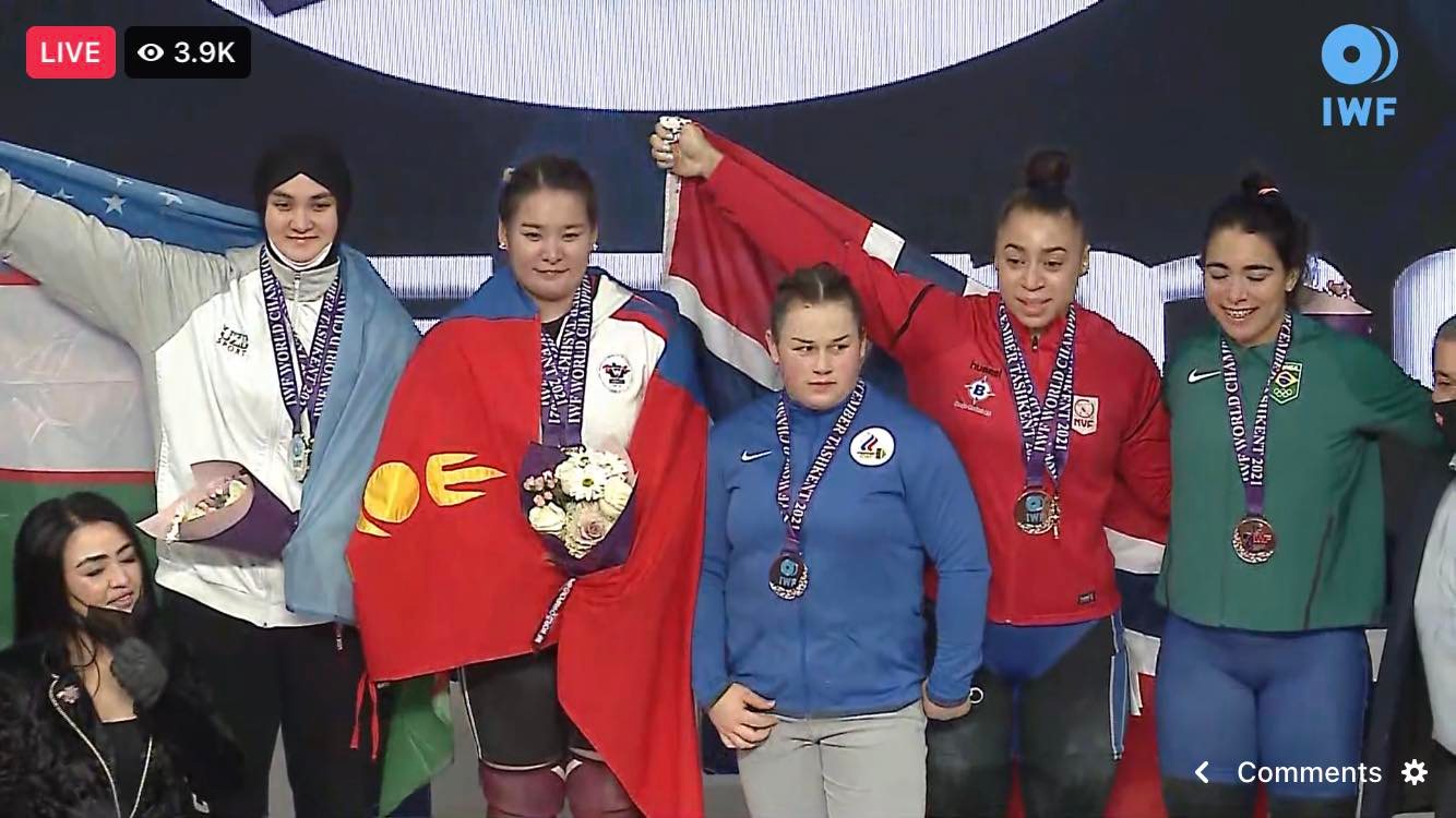 Харин манай Анхаа сүүлийн өргөлтөд 141 кг-ыг өргөснөөр нийлбэр дүн 250 болж, анх удаагаа нийлбэр дүнгээр дэлхийн аварга боллоо. Өмнө нь тэр огцом өргөлтөөр дэлхийгээс хоёр хүрэл медаль хүртэж байсан юм.