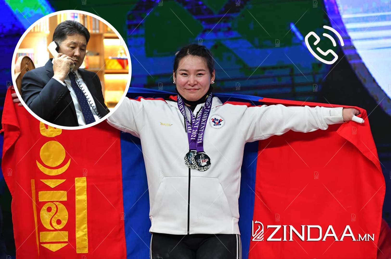 ОХУ-д албан ёсны айлчлал хийж буй Монгол Улсын Ерөнхийлөгч Ухнаагийн Хүрэлсүх хүндийг өргөлтийн насанд хүрэгчдийн Дэлхийн аварга шалгаруулах тэмцээнд өндөр амжилт үзүүлж, алтан медаль хүртсэн шинэхэн Дэлхийн аварга "Эрхэт Монгол" группийн тамирчин Мөнхжанцангийн Анхцэцэгтэй утсаар холбогдож, Гавьяат тамирчин М.Анхцэцэг болон түүний дасгалжуулагч Ц.Хосбаяр нарт Токиогийн олимпын наадам, үргэлжлүүлээд Дэлхийн аварга шалгаруулах тэмцээнд амжилттай оролцон, Монголын хүндийг өргөлтийн спортын түүхэн дэх анхны Дэлхийн аварга тамирчин болж, их спортын арвин түүхэнд тэмдэглэгдэх амжилт үзүүлсэнд баяр хүргэлээ.