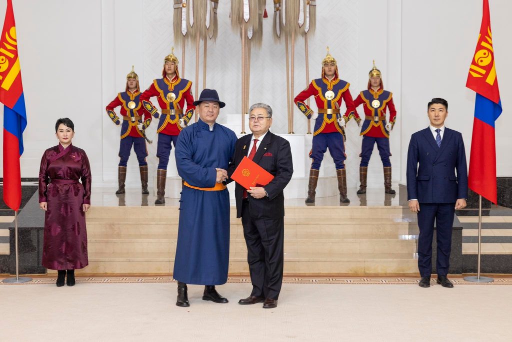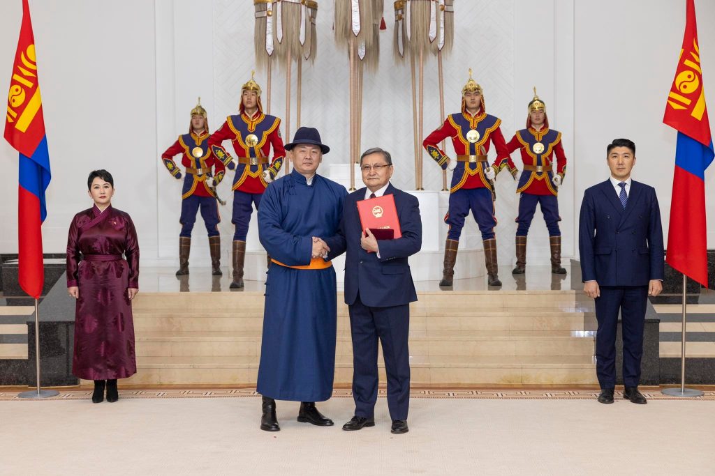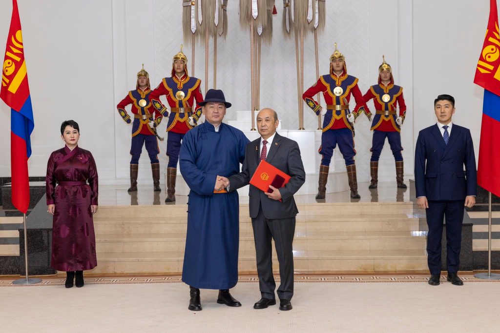 Гадаад харилцааны салбарт олон жил үр бүтээл, идэвх санаачилгатай ажиллаж гадаад бодлогын зорилтуудыг хэрэгжүүлэхэд оруулсан хувь нэмрийг нь өндрөөр үнэлж, нэр бүхий дипломатуудад Монгол Улсын Ерөнхийлөгч дипломат цол хүртээж, цолны тэмдэг, “Алтан гэрэгэ”-ийг гардуулав.