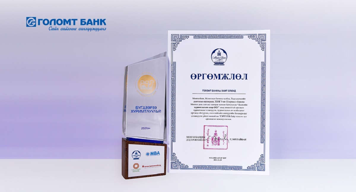 Хуримтлалыг хэвшүүлэх, ач холбогдлыг нь иргэдэд ойлгуулах, олон нийтийн санхүүгийн боловсролыг дээшлүүлэх үйлст Голомт банк манлайлан ажилласан учраас энэхүү хүндтэй шагналын эзэн болж, Өргөмжлөл, цомыг 2 дахь жилдээ дараалан хүртэж байна.