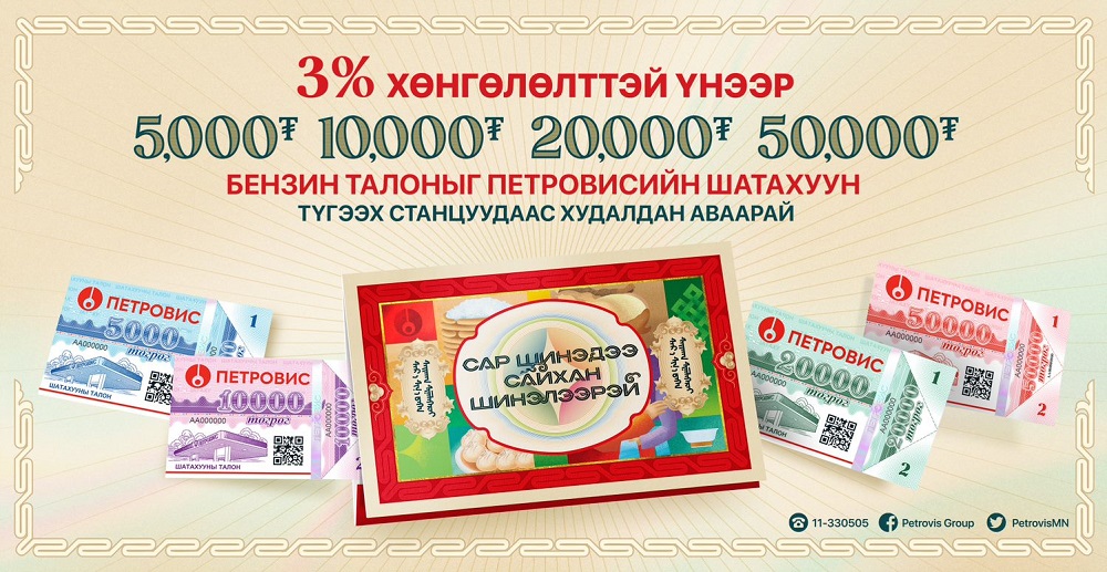 Өвлийг өнтэй давж, хавартай хавтай сайхан золгосныг бэлгэддэг өвөг дээдсээс уламжлан ирсэн төрт ёсны хамгийн том баяр “Цагаан сар”-ыг угтан Петровис Групп “Бэлэг бэлгийн дээд” бензин талоныг сар шинийн баярт зориулан худалдаанд гаргалаа.