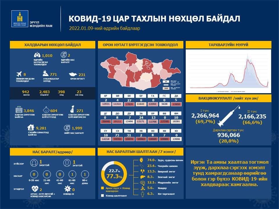 Монгол Улсын хэмжээнд сүүлийн 24 цагт "Ковид-19" халдварын шинэ тохиолдол бүртгэгджээ. Харамсалтай нь өнгөрсөн хоногт архаг хууч өвчтэй, ковид хавсарсан 61-ээс дээш насны хоёр хүн нас баржээ.