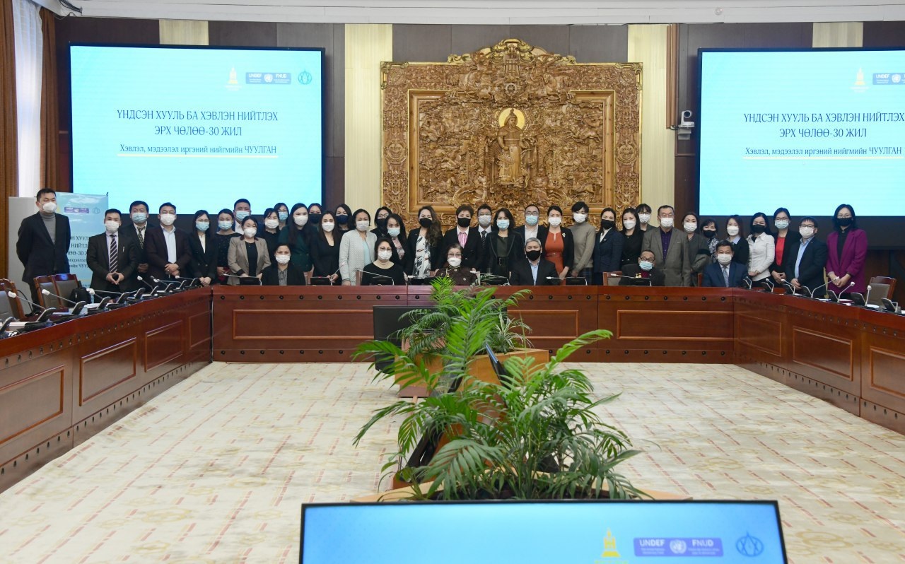Монгол Улсын дөрөв дэх буюу ардчилсан шинэ Үндсэн хуулийг 1992 оны нэгдүгээр сарын 13-нд БНМАУ-ын Ардын Их хурлаар баталсан. Тэгвэл Үндсэн хуулийн 30 жилийн ой баярын хүрээнд өчигрдөр /2022.01.12/ Төрийн ордны Их эзэн Чингис хаан танхимд "ҮНДСЭН ХУУЛЬ БА ХЭВЛЭН НИЙТЛЭХ ЭРХ ЧӨЛӨӨ – 30 ЖИЛ" сэдэвт чуулганыг Монгол Улсын Их хурлын Тамгын газар, Хэвлэлийн хүрээлэнгээс хамтран зохион байгууллаа.