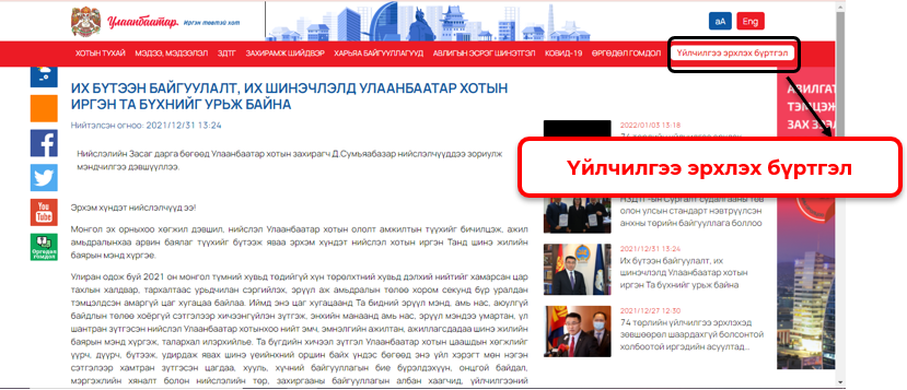 -Өмнө нь үйл ажиллагаа эрхэлж байсан иргэн, аж ахуйн нэгж байгууллагууд үйлчилгээ эрхлэх сунгалт хийлгэх шаардлагагүй болсон. Дүүргээс олгож байсан батламжийн хугацаа дууссан тохиолдолд www.ulaanbaatar.mn цахим хуудасны үйлчилгээ эрхлэх бүртгэлийн системд бүртгүүлснээр үйл ажиллагаагаа үргэлжлүүлэн явуулах бөгөөд жил бүр сунгалт хийх шаардлагагүй юм.