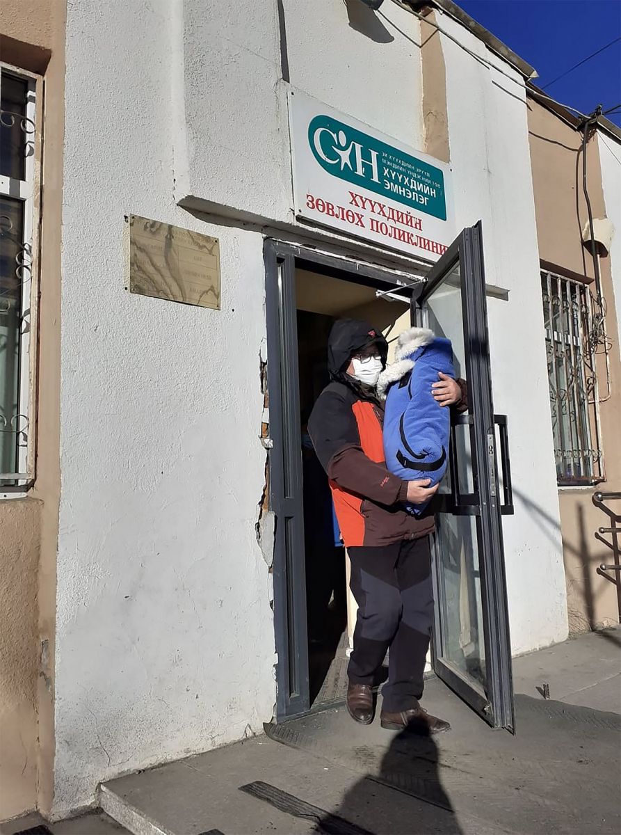 Хүлээлгийн өрөөний ажилтан “Энд цай, хоол идэж болохгүй шүү” гэж сануулахад настай эмэгтэй “Охин маань өглөө төрөөд одоог хүртэл хоол идээгүй юм аа, гялс өгчихөөд л явъя” гээд намуухан дуугаар хэллээ. Үдийн 15 цаг болжээ. Гаднаас өлгийтэй хүүхдээ тэвэрсэн, тэвдсэн байдалтай гурван хүн орж ирээд “Түрүүн ярьсан ковидын халдвар авсан гурван сартай хүүхэд” гэхэд хүлээлгийн өрөөний ажилтан ойлгов бололтой хүүхдийг ээжтэй нь оруулахыг зөвшөөрөв. Хүүхдийн эмээ болох З.Пагмадуламаас хүүхдийн биеийн байдлыг асууж ярилцлаа.