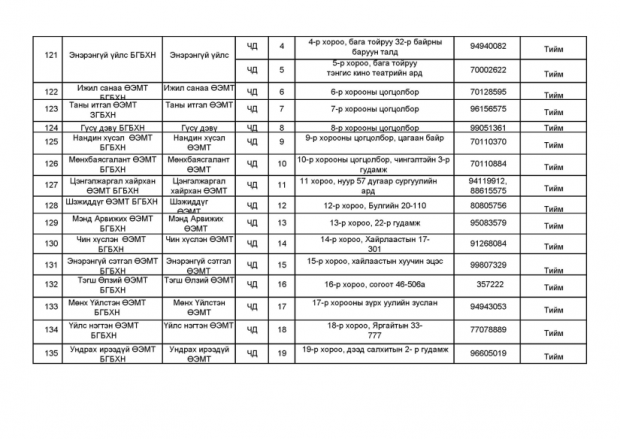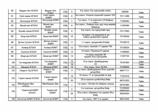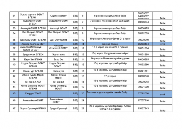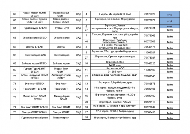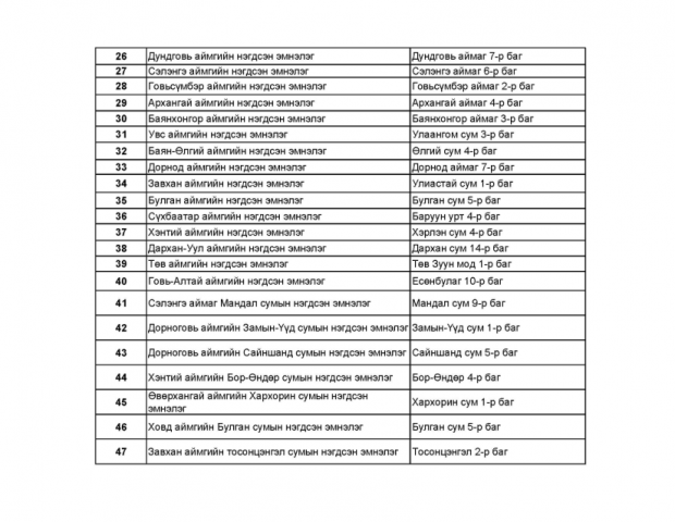 ЦАХИМ ЛИСТ ОЛГОХ ЭМНЭЛГИЙН ЖАГСААЛТ: