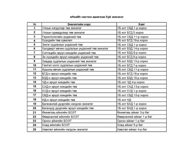 Өнөөдрөөс /2022.01.17/ 2, 3-р шатлалын нийт 47 эмнэлэг (аймаг, дүүргийн, клиник) болон Улаанбаатар хотын өрхийн эмнэлгүүд эмнэлгийн хуудас буюу листийг цахимаар олгож эхэлнэ.
