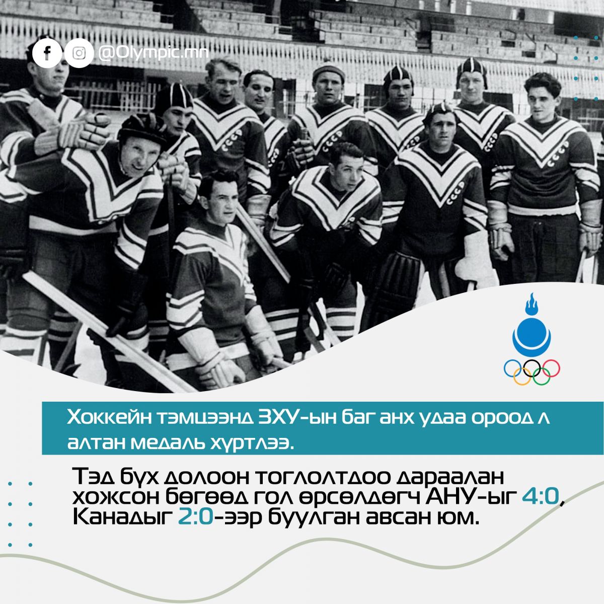 Хоккейн тэмцээнд ЗХУ-ын баг анх удаа ороод л алтан медаль зүүв. Тэд бүх долоон тоглолтдоо дараалан хожсон бөгөөд гол өрсөлдөгч Америкийг 4:0, Канадыг 2:0-ээр буулган авсан юм. “Китченер Ватерлоо Датчмен” хэмээх сонирхогчийн багаас бүрдсэн Канадын шигшээ хөрш Америкт 4:0-ээр ялагдсан. Тиймээс сүүлийн тулаанд Зөвлөлтийг дөрвөөс дээш гоолоор хожих ёстой байв. Гэвч эхний хоёр үед өрсөлдөгчийнхөө хаалга руу нэг ч цохилт гүйцэтгэж чадаагүй гэдэг. Ингээд хоёр хожигдсон хоккейн эх орон хүрэл медальтайгаа эвлэрэхээс аргагүй болжээ.