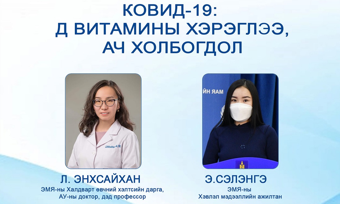 Ковидын халдварын үеийн Д витамины хэрэглээ, ач холбогдолын талаар Эрүүл мэндийн яамны Халдварт өвчний хэлтсийн дарга, АУ-ны доктор, дэд профессор Л.Энхсайхан зөвлөж байна.