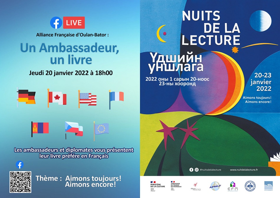 Улаанбаатар дахь Аллианс Франсэйз /Alliance Française/ төв Элчин сайд, дипломатууд оролцсон “Үдшийн уншлага”-ыг 2022 сарын нэгдүгээр сарын 20-нд франц хэл дээр хоёр дахь удаагаа зохион байгуулав.