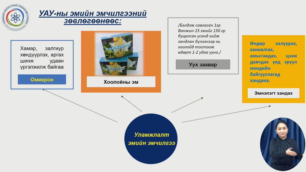 Үүнийг омикрооны үед хамар, залгиур хөндүүрлэх, хоолой өвдөх шинж тэмдэг удаан хугацаагаар явагдаж байгаа учраас хоолойгоо зөв зайлж байгаа тохиолдолд маш хурдтайгаар эхний үед шатанд нь дарж авах боломжтой. Тийм учраас Ванжин-15 гэдэг танг эмчийн жоргүйгээр зөвлөж байгаа.
