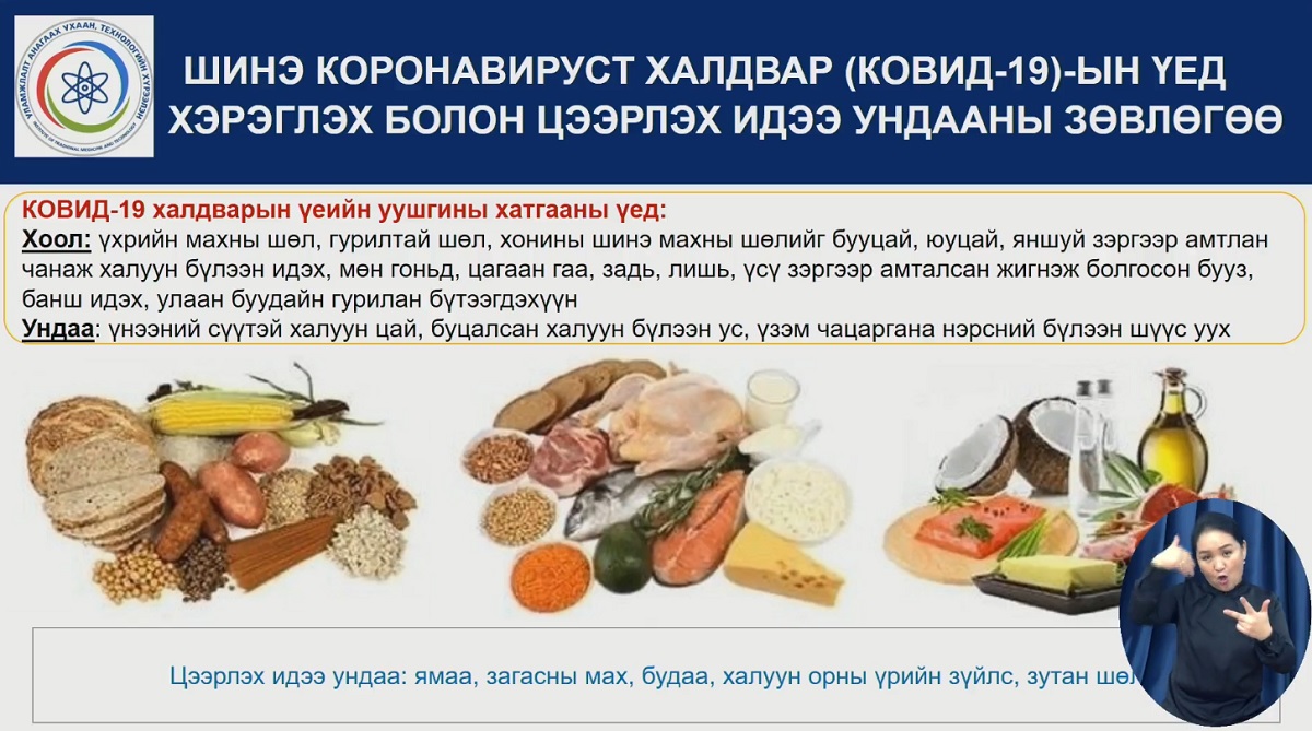 "КОВИД-19" ХАЛДВАРЫН УУШГИНЫ ХАТГААНЫ ҮЕД ХЭРЭГЛЭХ ХООЛ, ХҮНС