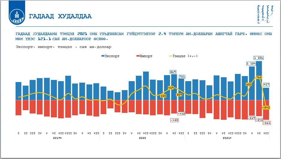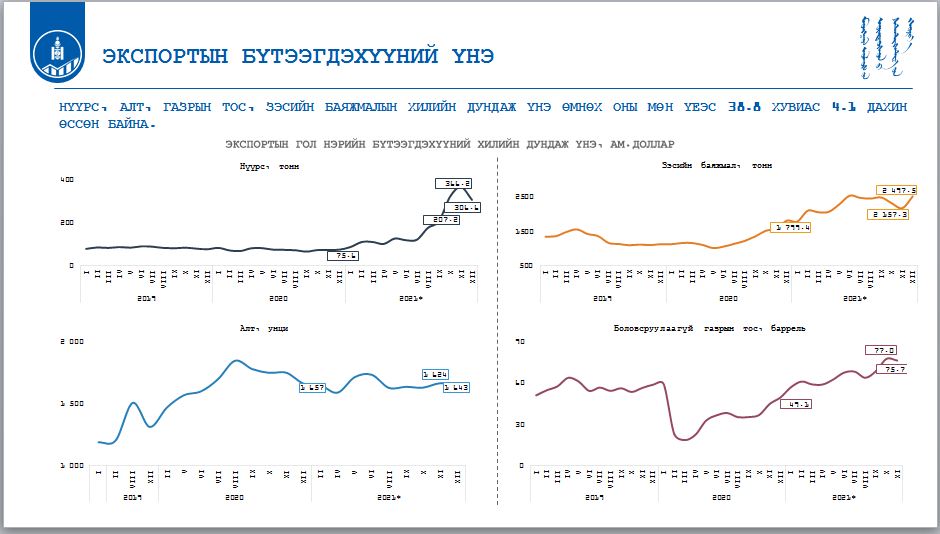 Дашрамд, Үндэсний статистикийн хорооноос танилцуулсан 2021 оны 12 сарын байдлаарх экспортын инфографик мэдээллийг хүргэе.