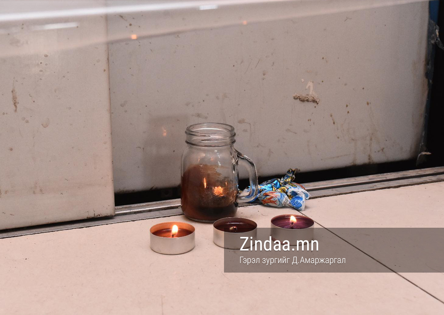 Биднийг 86-р байранд очих үед хүний хөдөлгөөн нам гүм байлаа. Хүүгийн унаж амиа алдсан 7 давхрын лифтний урд хамгаалалтын тууз татаж, зул өргөжээ.