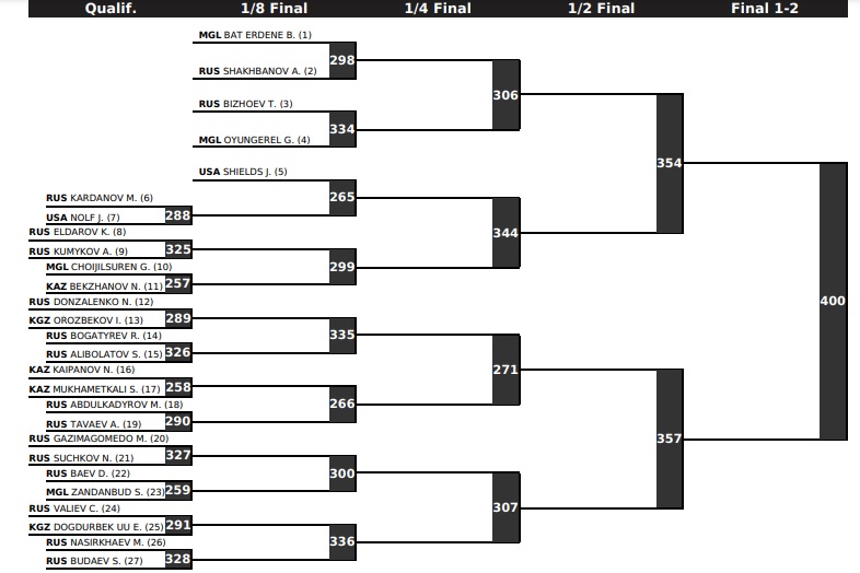 Манай 4 бөх барилдана. Доод хэсэг тун сонирхолтой. Энд дэлхийн хошой аварга Магомедрасул Газимагомедов, дэлхийн аварга Давид Баев, Чермен Валиев нар байгаа бол дээд хэсэгт дэлхий Европын медальт Тимур Бижоев, хоёр америк бөх багтжээ.