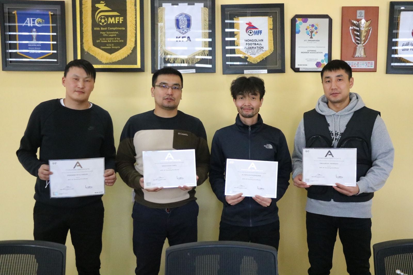 Тухайлбал “Эрчим” клубийн тоглогч, ахлагч асан Ц.Энхжаргал, “Хангарьд” клубийн тоглогч, ахлагч асан А.Эрдэнэбаяр, “Унаганууд” клуб төдийгүй футзалын үндэсний шигшээ багийн ахлагч П.Алтантулга, “ДМЮ” клубийн ахлах дасгалжуулагч Д.Нанжид нар АХБХ-ны “А” ангилалтай дасгалжуулагч болсныг дуулгахад таатай байна.