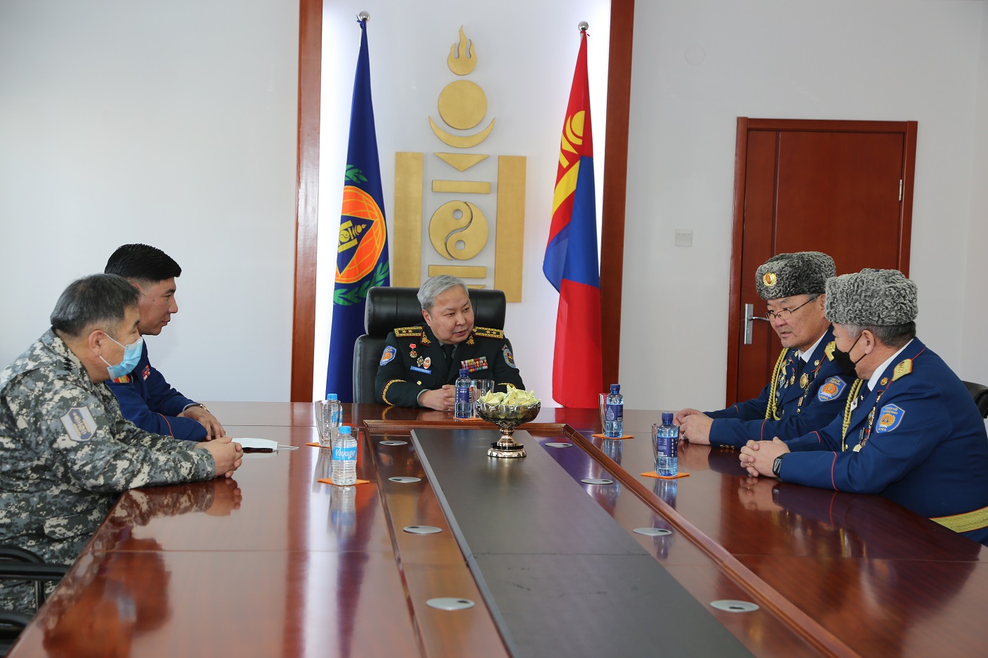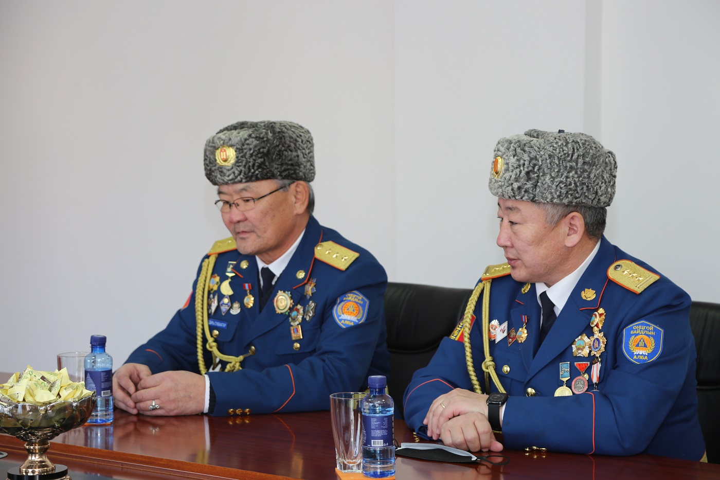 ОБЕГ-ын дарга, хошууч генерал Г.Ариунбуян болон даргын зөвлөлийн гишүүд, Монгол Улсын Ерөнхийлөгчийн зарлигаар Соёлын гавьяат зүтгэлтэн цол хүртсэн ОБЕГ-ын дэд даргаар ажиллаж байсан, бэлтгэл хурандаа Д.Дарь Сүхбаатар, “Үйлчилгээний гавьяат ажилтан цол” хүртсэн ОБЕГ-ын Гал түймэртэй тэмцэх газрын дарга асан, бэлтгэл хурандаа С.Залуухүү нарыг хүлээн авч, хүндэтгэл үзүүллээ.