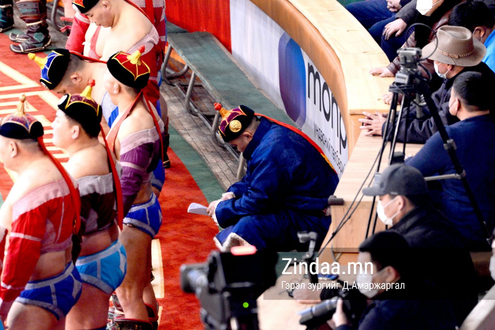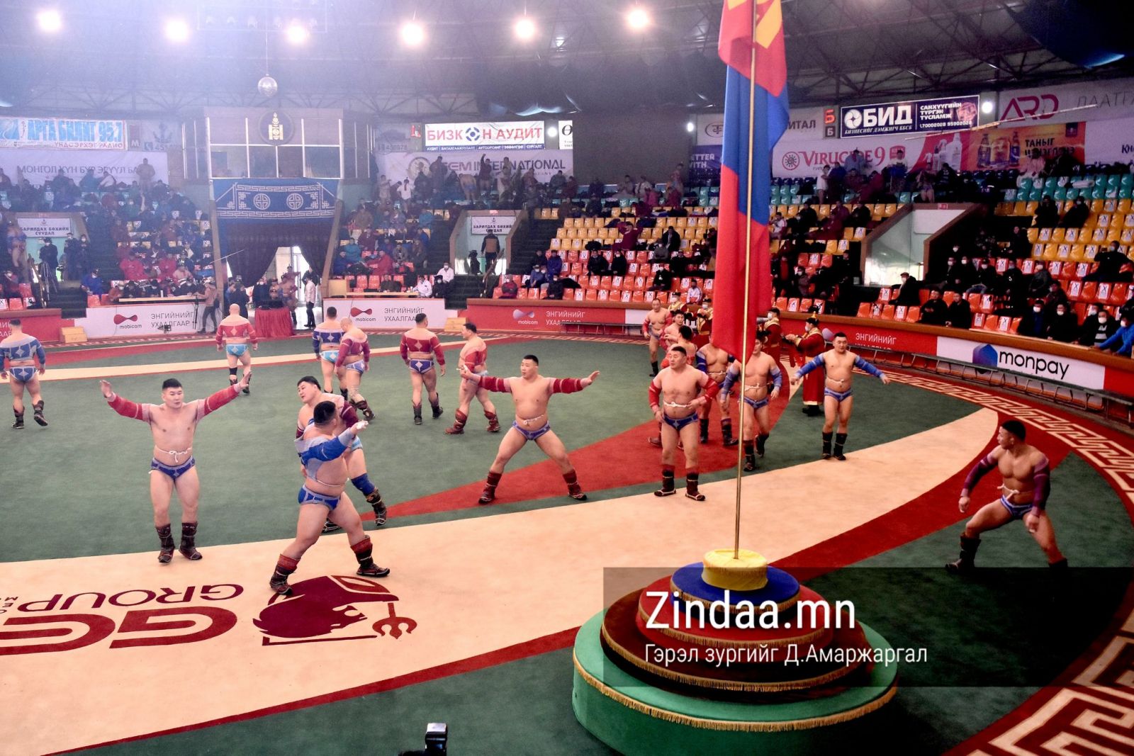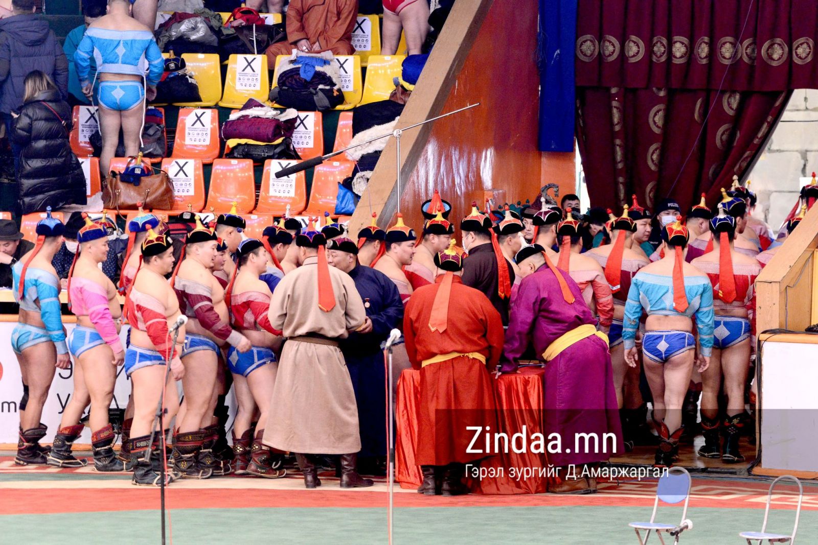 Өнөөдөр нэг, хоёрын даваа үргэлжлэх бол маргааш 14:00 цагаас гурвын даваа эхэлнэ. Барилдаанд улсын аварга П.Бүрэнтөгс, улсын арслан Ц.Содномдорж, Улсын гарьд Б.Гончигдамба, М.Бадарч нарын хүчит 256 бөх зодоглож байна.
