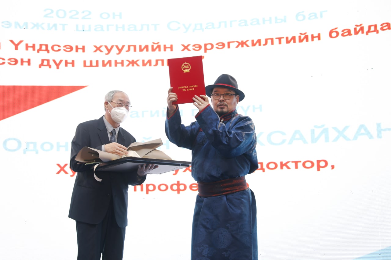 Ийнхүү судалгааны багийн гишүүдэд Монгол Улсын Их Хурлын шагналыг хүртээж, өргөмжлөл, Б.Чимидийн дүрс бүхий медаль, мөнгөн урамшуулал гардууллаа.