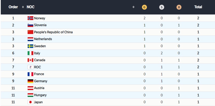 Бээжингийн олимпын наадмын албан ёсны гурав дахь хоног эхлэж байна. Одоогийн байдлаар 2 алтан медальтай Норвегийн баг тэргүүлж байна. Нутгийн эзэн Хятадын баг шорт-трекийн холимог буухианд түрүүлж, анхны алтан медалиа авчээ.
