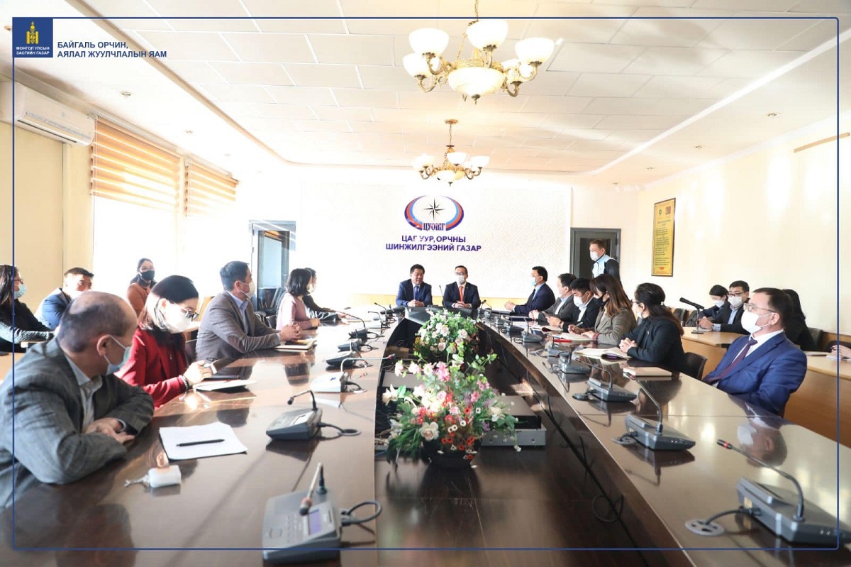 БОАЖ-ын сайд Б.Бат-Эрдэнэ өчигдөр /2022.02.15/ Аялал жуулчлалын хөгжлийн төв, Цэнгэг ус, байгаль хамгаалах төв, Цаг уур, орчны шинжилгээний газар зэрэг Байгал орчин, аялал жуулчлалын яамны харьяа гурван газрын өдөр тутмын үйл ажиллагаатай танилцаж, ажилтан, албан хаагчдын төлөөлөлтэй уулзлаа.