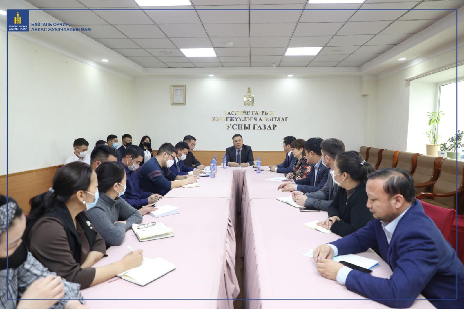 Уулзалтын эхэнд БОАЖЯ-ны харьяа газруудаас танилцуулга, мэдээлэл хийж, тулгамдаж буй асуудлаа ярилаа. Ойн судалгаа, хөгжлийн төв /УТҮГ/ өнөөдрийн байдлаар 12 үндсэн, 14 гэрээт ажилтантай. Сүүлийн хоёр сар цалингүй ажиллаж байна гээд бүтэц, орон тоо өнөөдрийг хүртэл ойлгомжгүй байгаа нь үйл ажиллагаагаа цаг хугацаандаа төлөвлөж явуулахаас эхлээд хүндрэл тулгарч байгааг хэлэв.