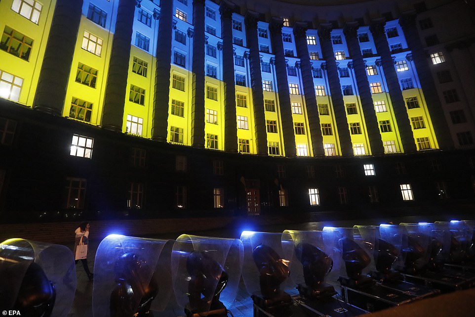 Их Британийн Гадаад хэргийн яамны төв байрыг Украины Эв нэгдлийн өдрийг тохиолдуулан Украины далбааны өнгөөр гэрэлтүүлжээ.