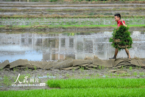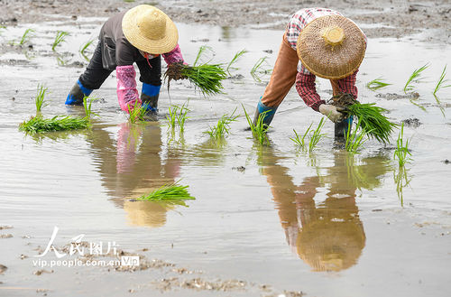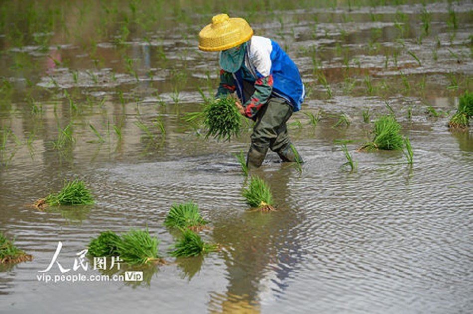 Хайнань мужийн Лингао шяний Бохөү суурингийн тариаланчид /2022.02.16/-ны өдрийн цаг агаар сайхан байх үед амжуулан тариалангийн талбайд будаагаа тарьж байна. Усан тариа нь зураг шиг харагдана.