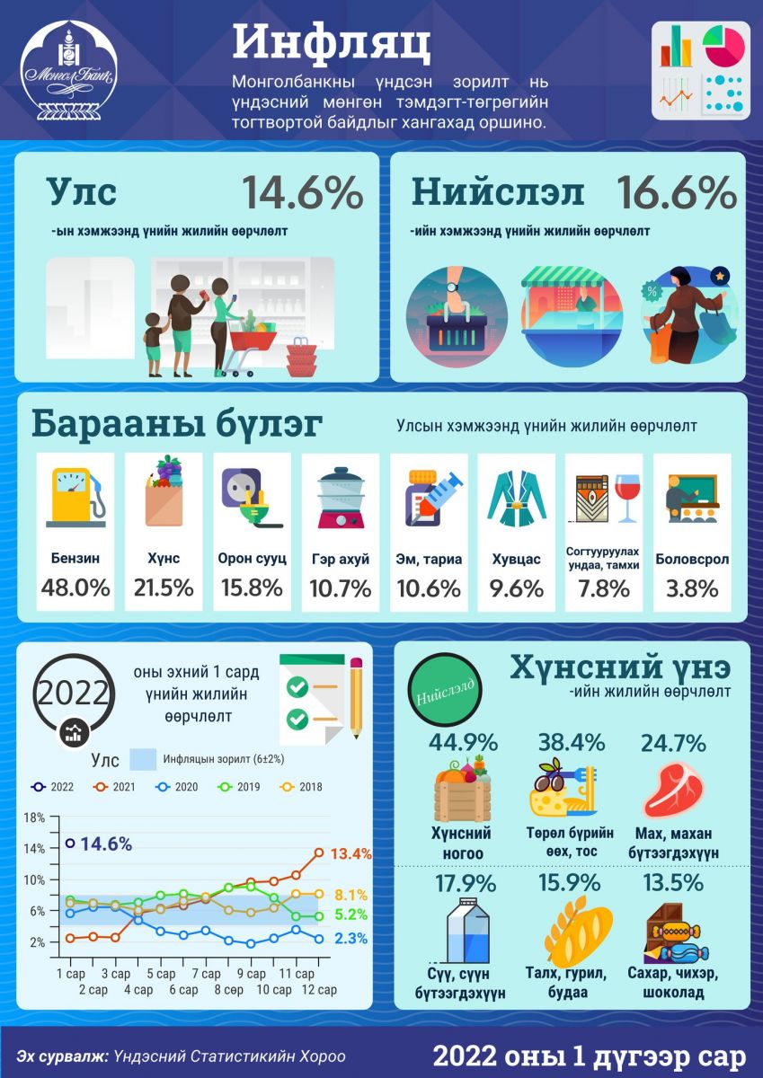 Тэгвэл Төв банкнаас инфляцын задаргааг харуулсан дараах инфографик мэдээллийг өгч байна