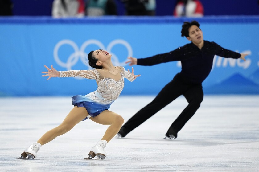 Хятадын уран гулгагч Вэнжин Суй, Кон Хан нар Бээжингийн олимпын спорт хосын чөлөөт үзүүлбэрийн төрөлд түрүүллээ.
