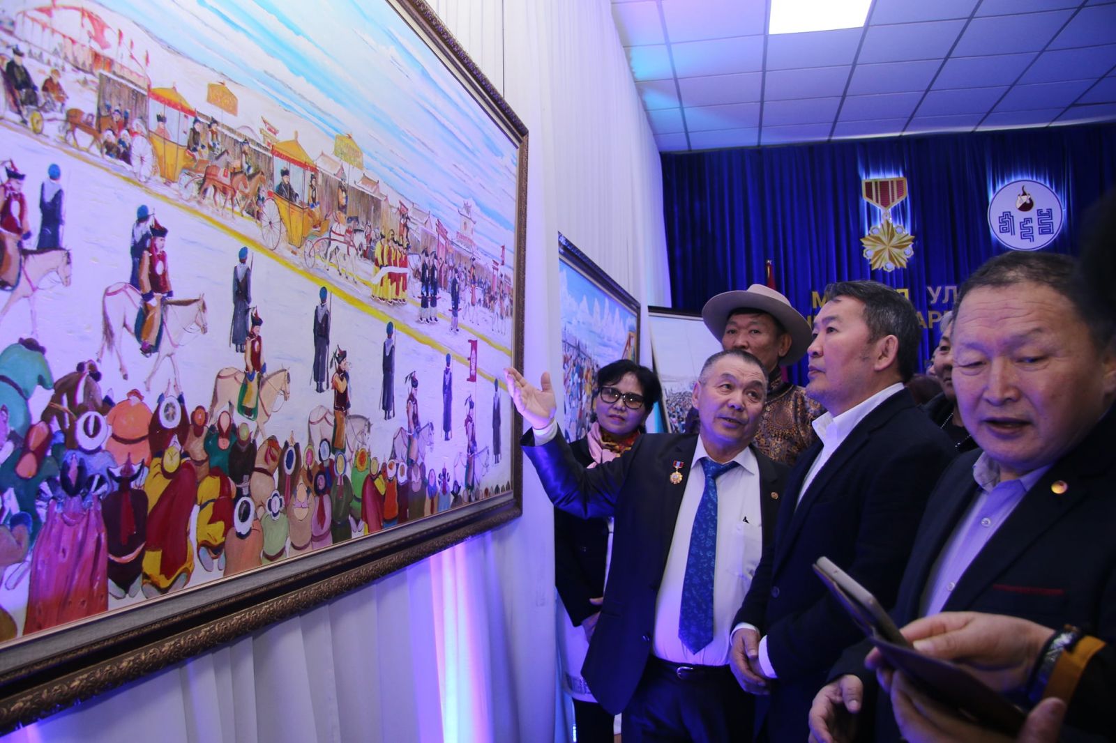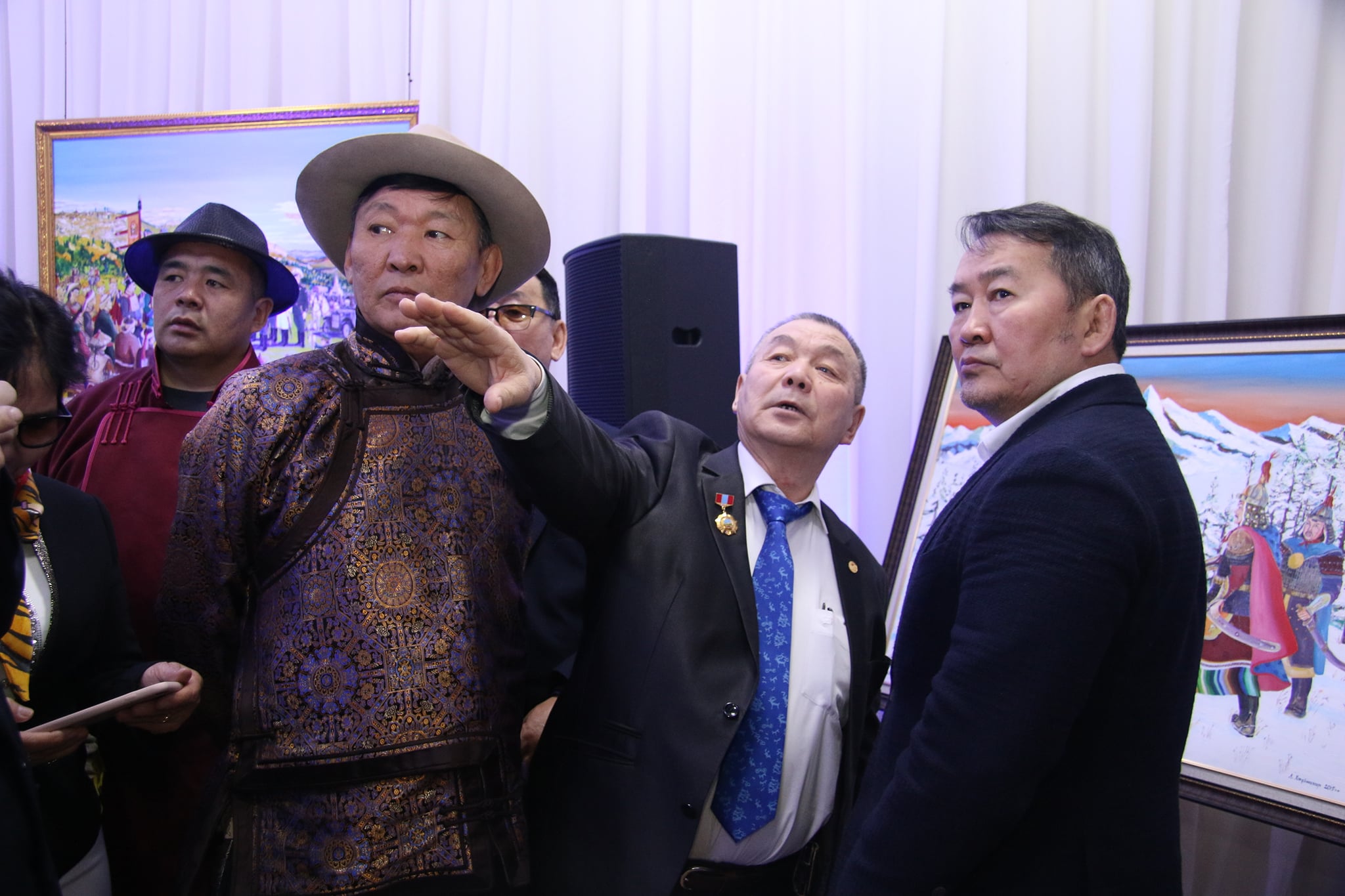Монголын Урчуудын эвлэлийн гишүүн Л.Хадбаатарын "Түүчээ цаг-3" уран зургийн үзэсгэлэнг Монгол Улсын Ерөнхийлөгч асан Х. Баттулга үзэж сонирхжээ.