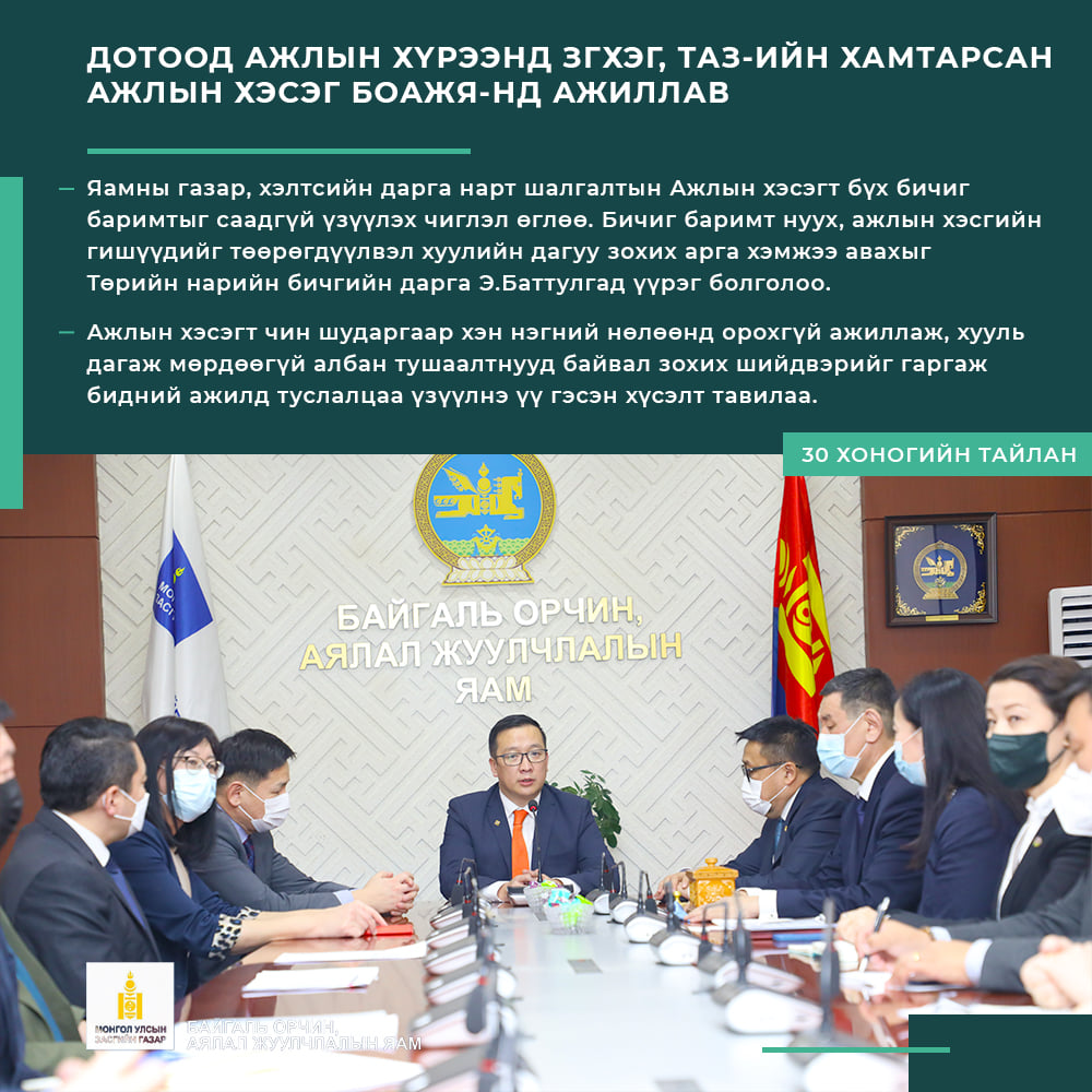 Байгаль орчин, аялал жуулчлалын сайдаар Б.Бат-Эрдэнэ томилогдсоноос хойш 30 хоногийн тайланг хүргэж байна.