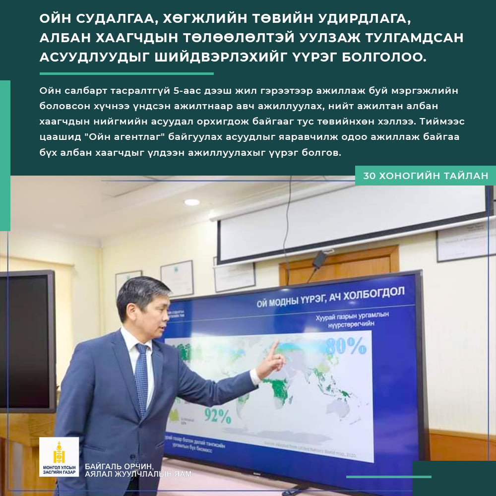 Салбарын суурь асуудлуудыг шийдвэрлэж, цаашдаа ажиллахад дөхөм болох томоохон уулзалт, зөвлөгөөн, судалгаа шинжилгээний ажлуудыг эхлүүллээ.