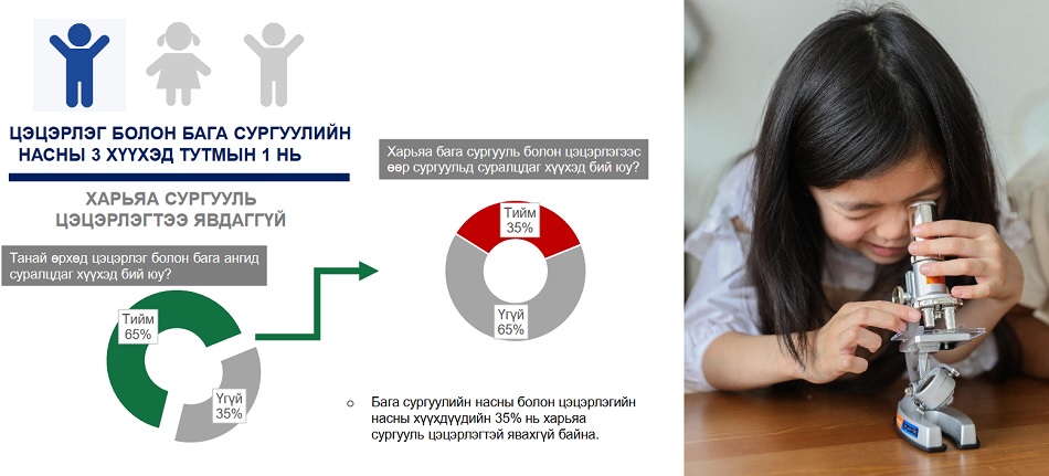 Бага сургуулийн насны болон цэцэрлэгийн насны хүүхдүүдийн 35 хувь буюу гурван хүүхэд тутмын нэг нь харьяа сургууль, цэцэрлэгтэй явдаггүй байна.