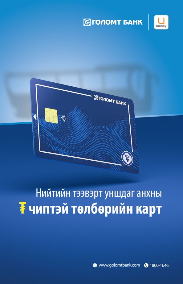 Голомт банкны  “U money ₮ чиптэй карт”-ыг та автобусанд шууд уншуулж зорчихоос гадна бусад төлбөр тооцоо хийхдээ ч ашиглах цогц боломжийг бид бүрдүүлж буй юм. Түүнчлэн тус карт нь хэрэглэгчдийн аюулгүй байдлыг бүрэн хангасан, өндөр нууцлал бүхий EMV/NFC дэвшилтэт технологийг ашигласан, тусгайлан цэнэглэх шаардлагагүй гэх мэт онцлог давуу талуудтай юм.