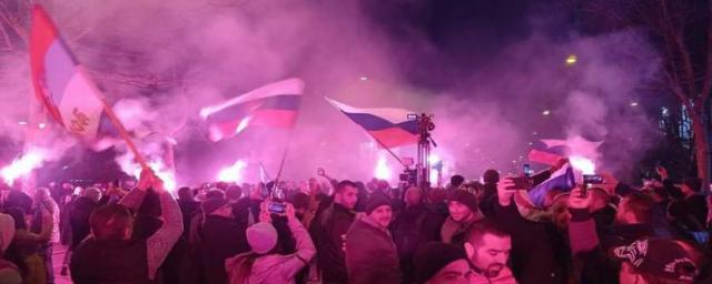 Монтенегро улсын нийслэл Подгорица хот дахь Монтенегрогийн парламентын ордны өмнө Оросыг дэмжсэн тайван жагсаал болжээ. Мөн ийм арга хэмжээ Бар, Никчише хотод болсон байна.