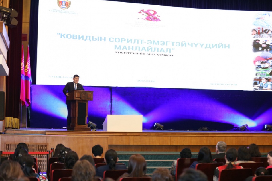 Монгол Улсын Ерөнхий сайд Л.Оюун-Эрдэнэ “Ковидын сорилт-Эмэгтэйчүүдийн манлайлал” хүндэтгэлийн арга хэмжээнд өчигдөр /2022.03.06/ оролцож, цар тахлын амаргүй үед ажиллаж, эдийн засгаа сэргээхэд манлайлан оролцсон эмэгтэйчүүдэд талархал илэрхийллээ.