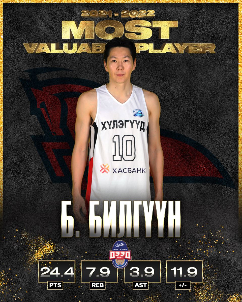 2021 - 2022 оны Дээд Лигийн тэргүүн тоглогч буюу MVP - "Хасын Хүлэгүүд" багийн ахлагч Б.Билгүүн