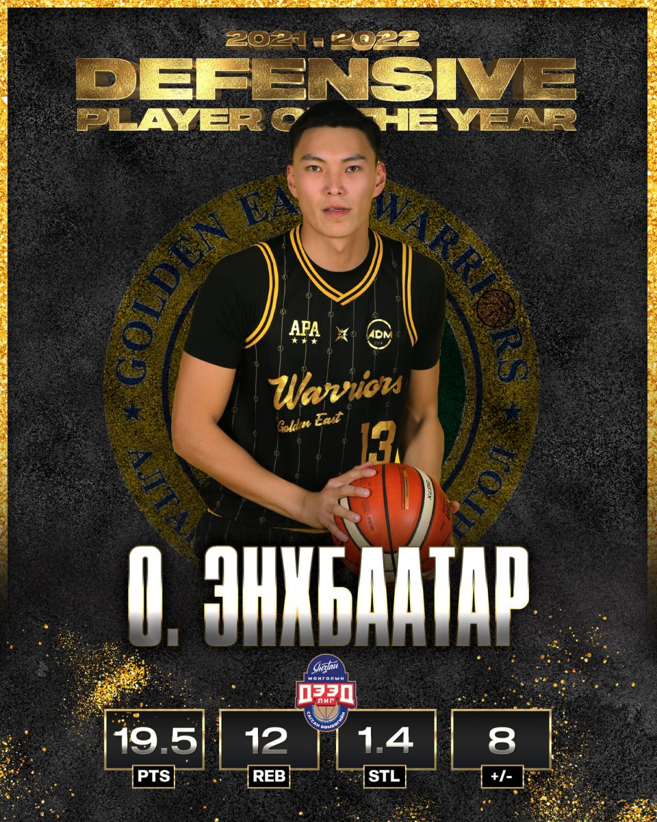 Дээд Лигийн шилдэг хамгаалан тоглогч буюу DPOY - "Архангай Алтандорнодын Дайчид" багийн тоглогч О. Энхбаатар