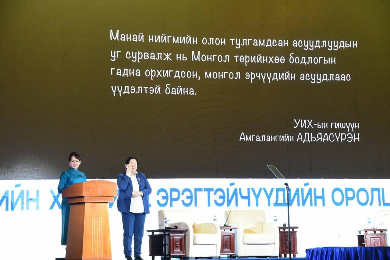 УИХ дахь Ардчилсан намын бүлгийн гишүүн, УИХ-ын гишүүн А.Адьяасүрэн санаачилж, Монгол Улсын Ерөнхийлөгчийн ивээл дор зохион байгуулж буй “Нийгмийн хөгжилд эрэгтэйчүүдийн оролцоо, манлайлал” сэдэвт үндэсний чуулган Төрийн ордонд болов.