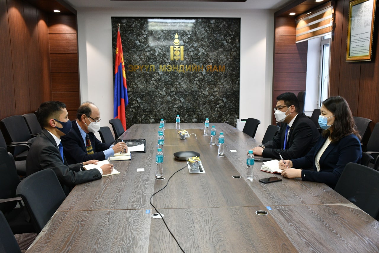 Эрүүл мэндийн сайд С.Энхболд шинээр томилогдсон Элчин сайдад баяр хүргэж, ажлын өндөр амжилт хүсэхийн сацуу өнгөрсөн оны 4 дүгээр сард байгуулсан хоёр улсын Эрүүл мэндийн яамд хоорондын Хамтын ажиллагааны санамж бичигт тусгагдсан чиглэлүүдээр хамтран ажиллаж, бодит үр дүнд хүрэх эрмэлзлэлтэй байгаагаа дахин нотлов. Дээр дурьдсан Санамж бичгийн хүрээнд хоёр улсын Эрүүл мэндийн яамд халдварт болон халдварт бус өвчний хяналт, урьдчилан сэргийлэлт, анагаах ухаан, эм зүй, биотехнологийн судалгаа, эрүүл мэндийн анхан шатны тусламж үйлчилгээ зэрэг чиглэлүүдээр хамтран ажиллахаар тохиролцсон юм. Уулзалтын үеэр Эрүүл мэндийн сайд С.Энхболд КОВИД-19 цар тахлын дотоодын нөхцөл байдал хийгээд цар тахалтай тэмцэх чиглэлээр Монгол Улсын Засгийн газраас авч хэрэгжүүлсэн арга хэмжээнүүд, нэн ялангуяа вакцинжуулалтын хамрагдалт, үр дүнгийн талаар танилцуулж, улмаар Эрүүл мэндийн яамд хоорондын анхны Зөвлөлдөх уулзалтыг энэ ондоо багтааж зохион байгуулах хүсэлтэй байгаагаа илэрхийллээ.