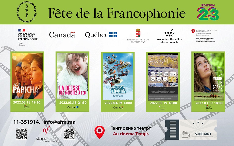 Түүнчлэн  УДБЭТ-т алдарт “Кармен” дуурь тоглогдох бөгөөд уг дуурийг Улаанбаатар хотын томоохон дэлгэцүүдээр шууд дамжуулан үзүүлнэ. Мөн “Тэнгис” кино театрт франц хэлтэн орнуудын кино наадам болно.