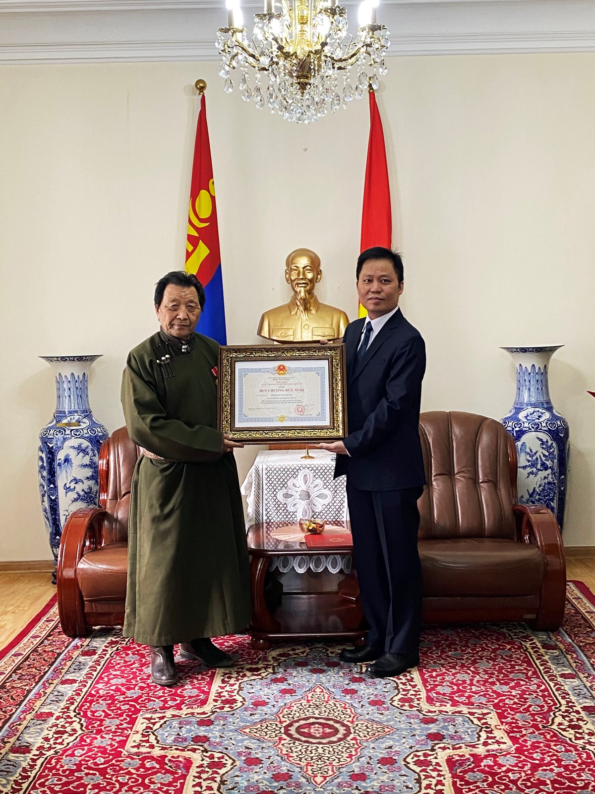 Вьетнамын суут удирдагч, үндэсний эрх чөлөөний баатар, аугаа хүн Хо Чи Миний амьдрал, үйл хэргийг алдаршуулах, Вьетнам ардын уран зохиолуудыг орчуулан сурталчлах, нийтийн хүртээл болгох зэргээр хоёр улсын уламжлалт, найрсаг харилцаа, хамтын ажиллагааг хөгжүүлэхэд оруулсан хувь нэмрийг нь БНСВУ-ын төр засаг өндрөөр үнэлж энэхүү шагналыг олгосон юм.