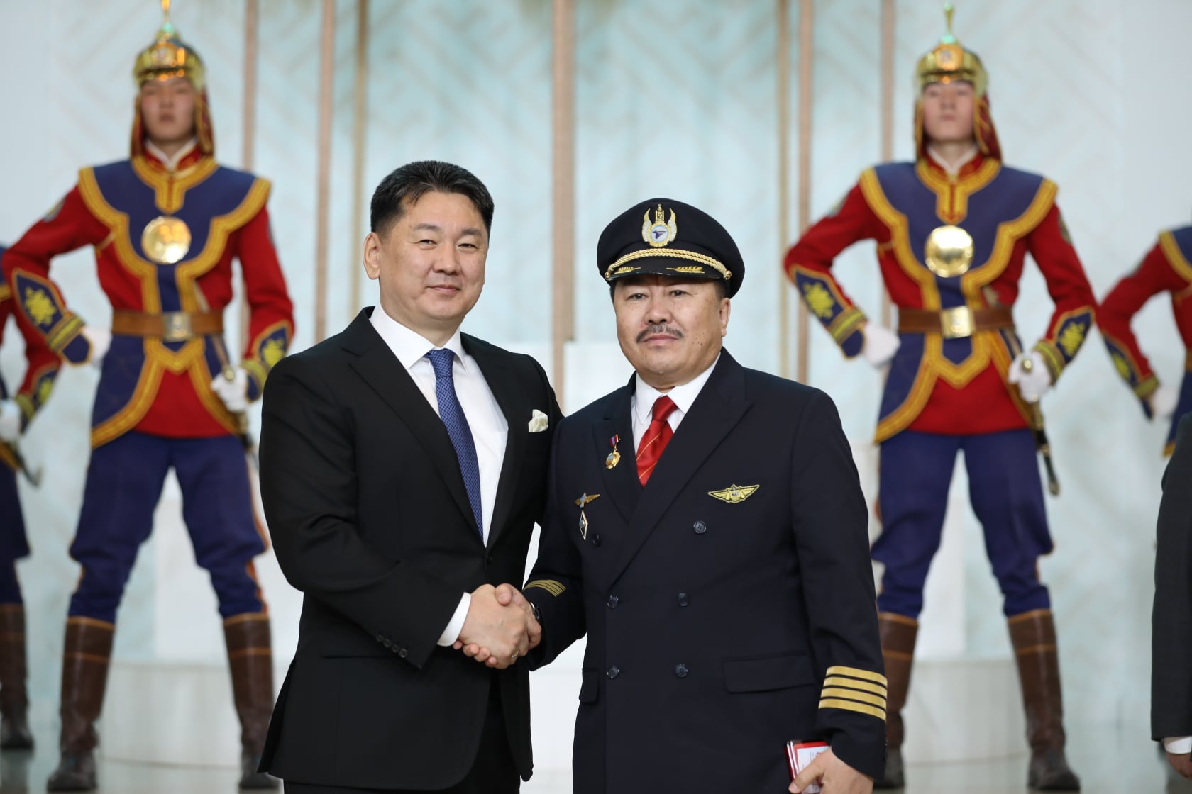 Наурызын баярыг тохиолдуулан Монгол Улсын Ерөнхийлөгч У.Хүрэлсүх төрийн дээд одон, медаль гардуулж байна.