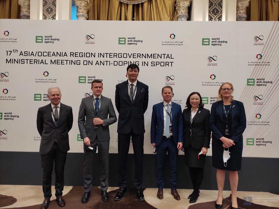 Арабын Нэгдсэн Эмират Улсын Дубай хотод Ази Номхон далайн бүсийн Засгийн газар хоорондын Спорт дахь допингийн эсрэг чуулга уулзалт гуравдугаар сарын 14-15-нд болж, 45 орны 88 төлөөлөгч хүрэлцэн ирэв.