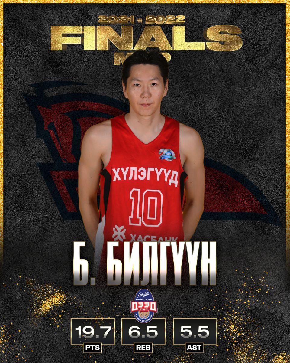 2022 оны Янзтай Дээд Лигийн финалын үнэ цэнэтэй тоглогчоор Хасын Хүлэгүүд багийн ахлагч Б.Билгүүн