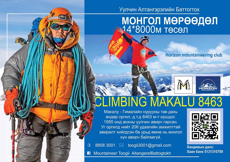 Далайн түвшнээс дээш 8463 м өндөрт орших Макалу оргилд монгол хүн өмнө нь авирч байгаагүй юм.